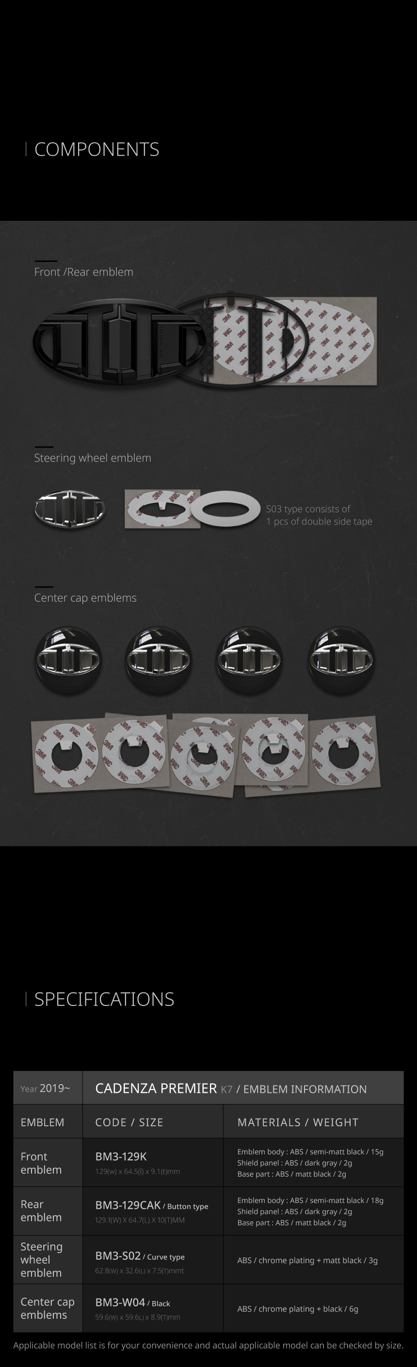 • The emblem size list is based on vehicles released in South Korea. Emblem sizes may vary by country and trim level.