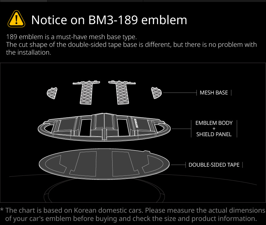 | The size of the emblem may vary depending on the vehicle model year and country, so please check the size of the front and rear emblem of your vehicle before you install it and purchase it after checking the compatibility. |
