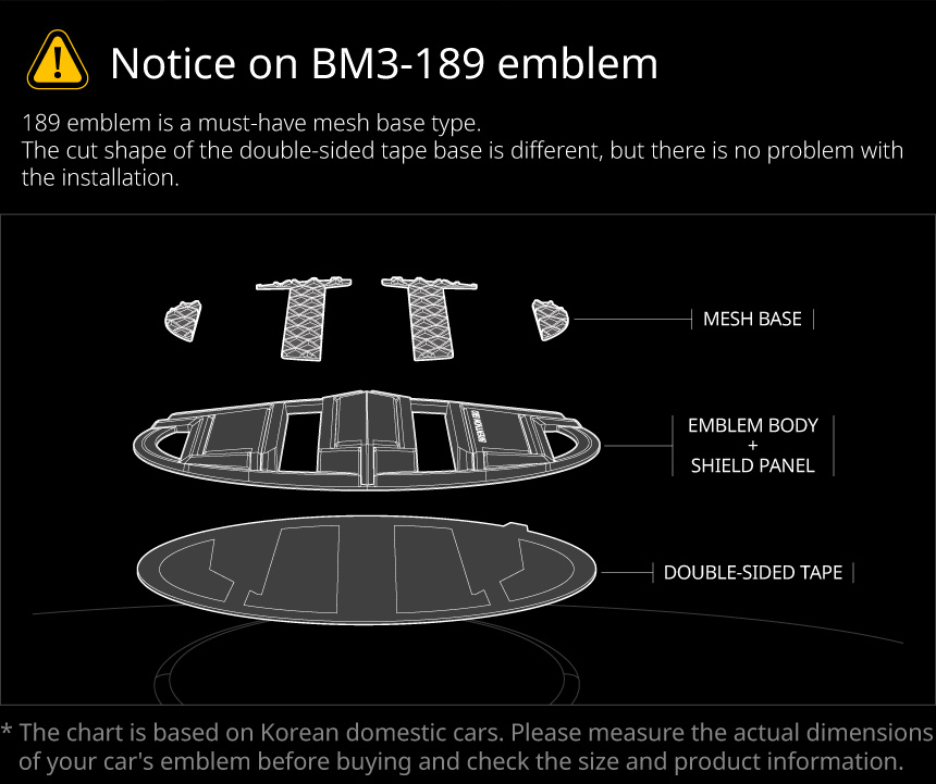 | The size of the emblem may vary depending on the vehicle model year and country, so please check the size of the front and rear emblem of your vehicle before you install it and purchase it after checking the compatibility. |