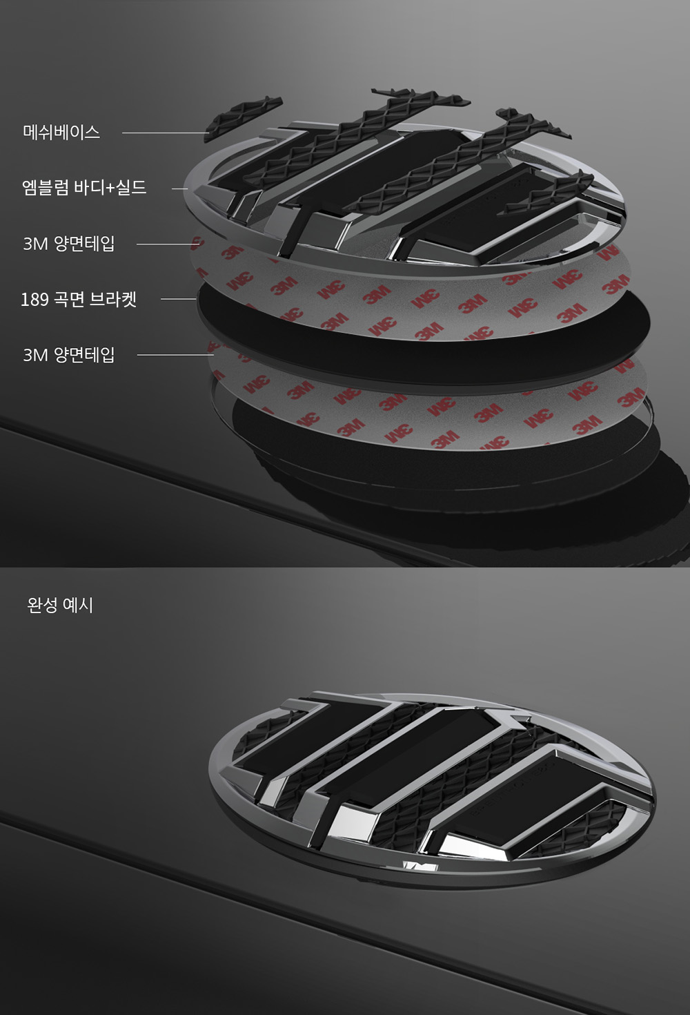 [Front Emblem] Install with the 189 bracket as shown in the illustration below.