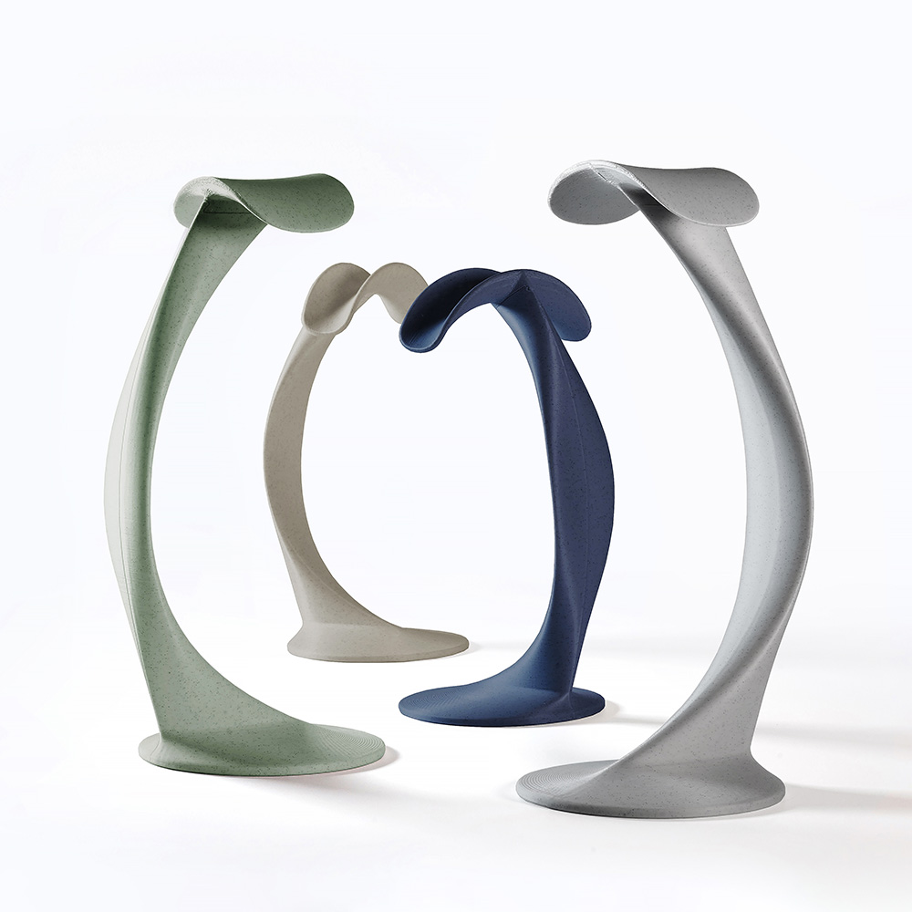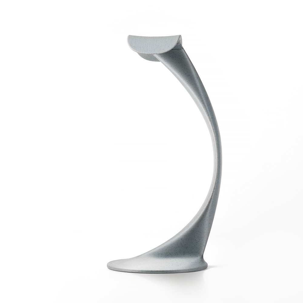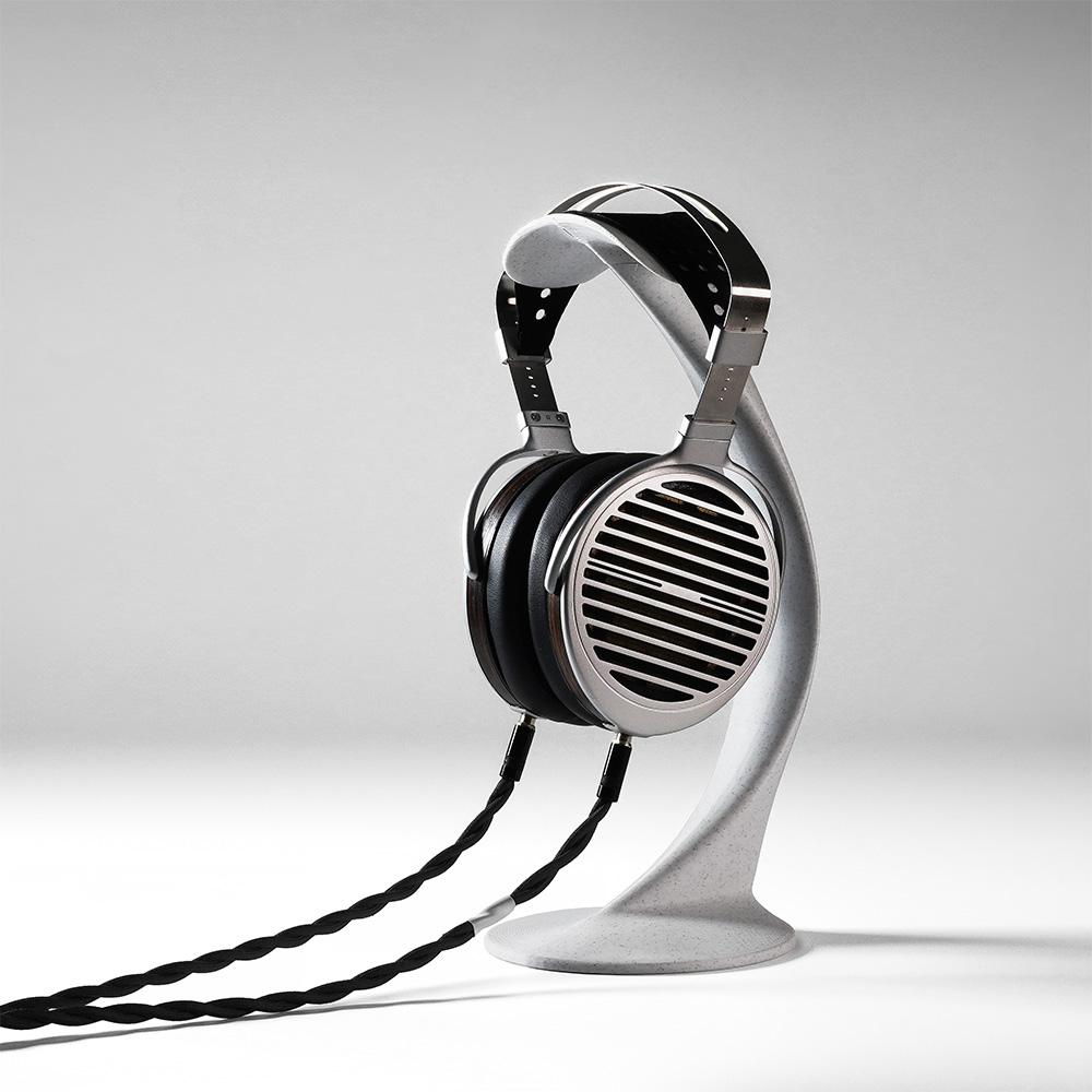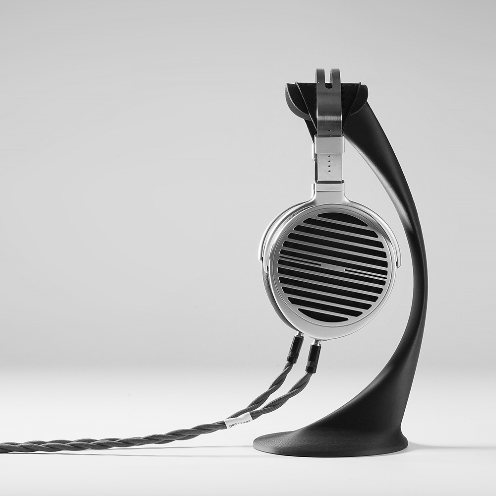 The stand is designed to accommodate headphones without bending the cable, even when hung in the same direction as they are removed after use.