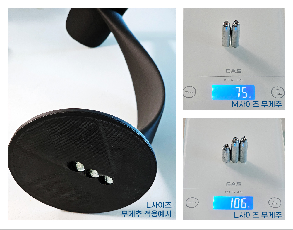 The standard product, without the weight option, already offers sufficient stability with a weight of 260–300g for the L size, making it heavier than many comparable stands from other brands.